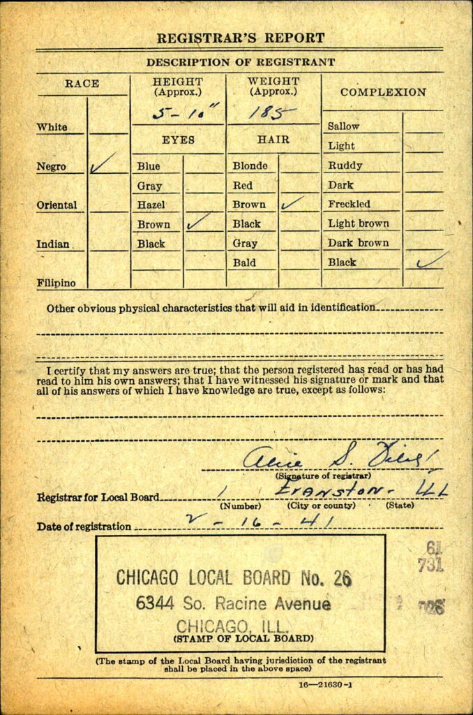 Charles Preston Warren, born 7 April 1921 in Chicago, Illinois. The son of George and Ethel Warren Charles grew up in Chicago, according to Census records, his father was a mail clerk for the United States Postal Service. George originally from Kentucky, from parents also from Kentucky, Ethel was born in Ohio, with parents from Tennessee and Ohio. According to 1930 census records he had a brother, George, eight years older. Charles attended Parker High School in Lincoln Park, and then enrolled at Northwestern University. His collegiate career included playing football alongside All-American Otto Graham, and as the first African-American Big 10 Quarterback, in the early 40s. His time at University was disrupted by service as an Army Air Forces Staff Sergeant in the Far East. In 1945, Charles married Lastinia Martinez, a musician from New Orleans. Warren graduated Northwestern in 1947 with a degree in Zoology.